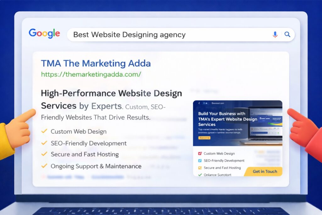 At TMA-The Marketing Adda, we don’t just design websites.we build high-performance digital experiences that help businesses attract, engage, and convert their ideal customers. Whether you are a startup, a growing small business, or an established enterprise, our website design solutions are customized to help you stand out, scale faster, and grow sustainably.